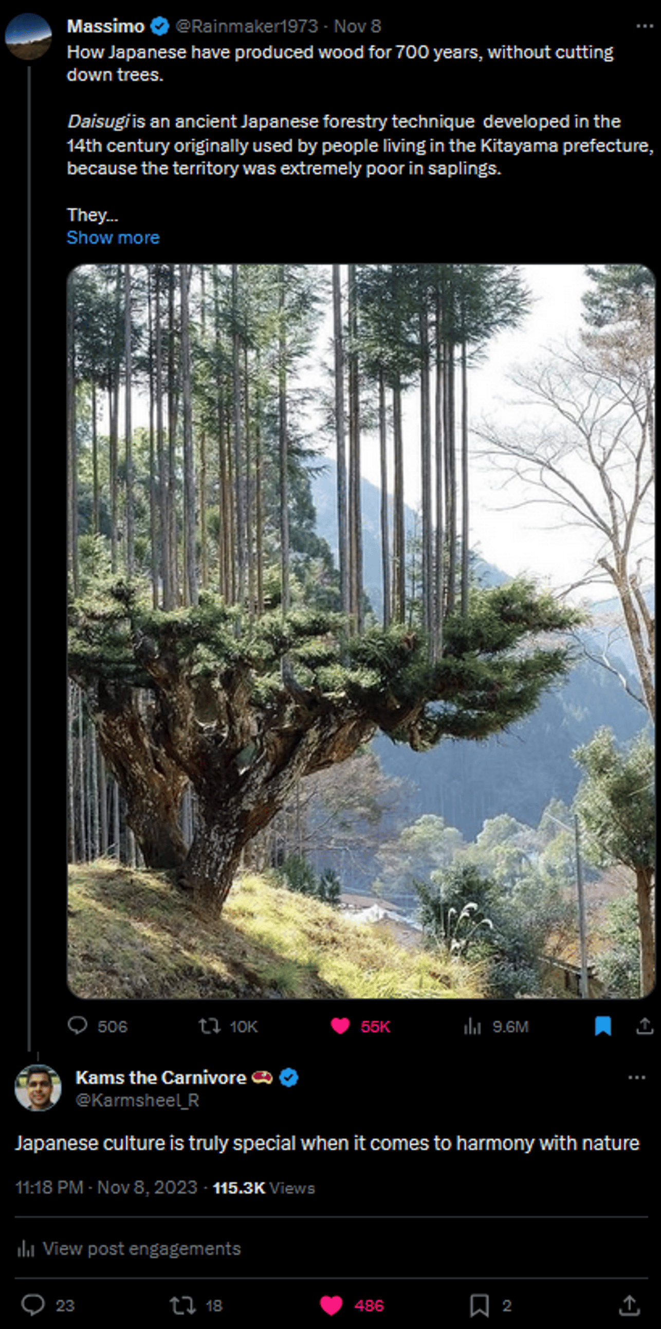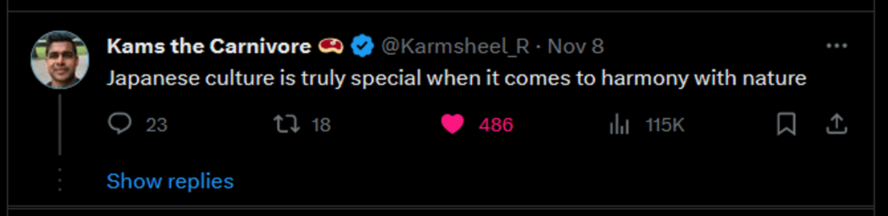 Massimo had 55k likes on his post and 9.6M impressions. Really massive. But, that’s because he has 1.6M followers. That’s about 12,500 times larger than me right now.